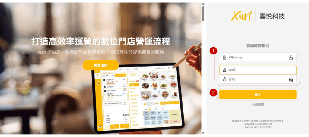 1. 登入後台請輸入以下資訊