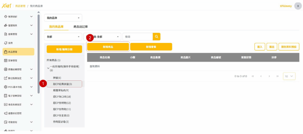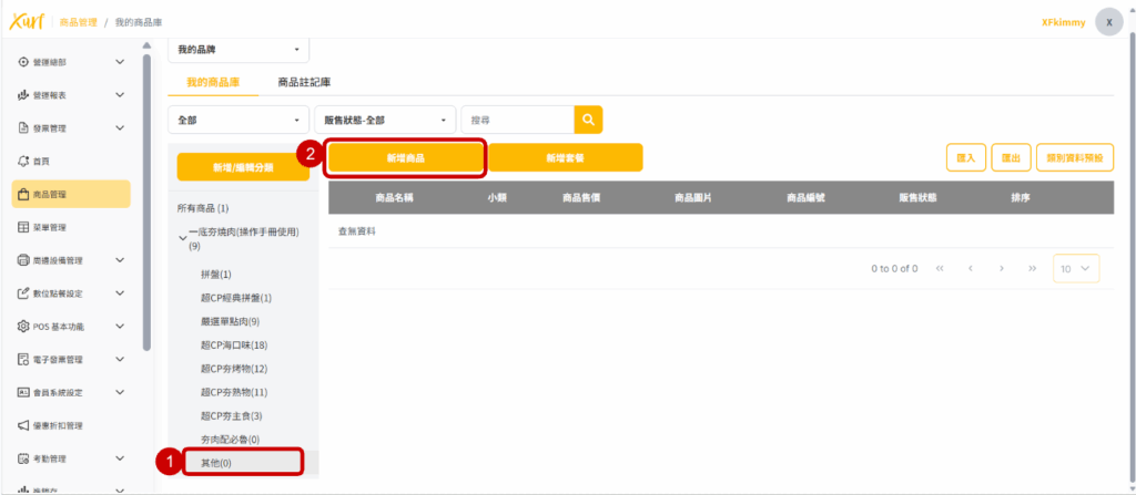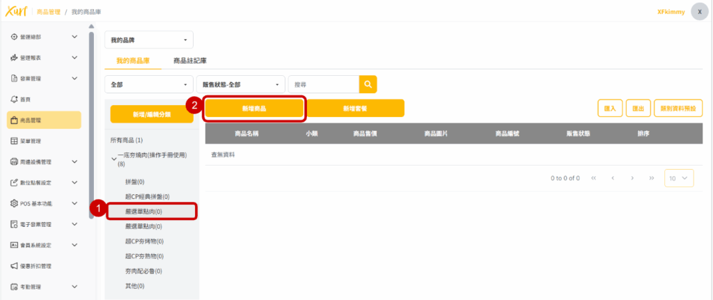1. 點選需新增商品之「 商品分類 」