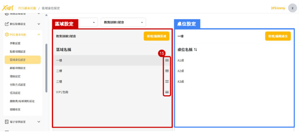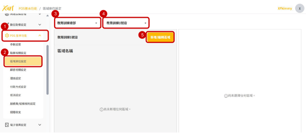 5-1-1 【POS基本功能】區域桌位設定