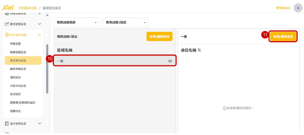 11. 點選「新增/編輯桌位」