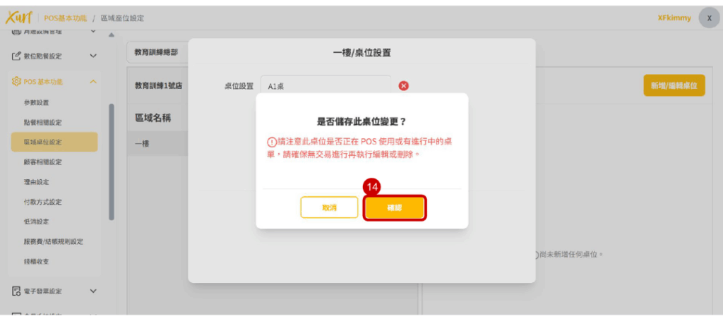 ★ 若該桌位有交易進行中請勿編輯或刪除桌位,若刪除恐會影響訂單遺失等狀況