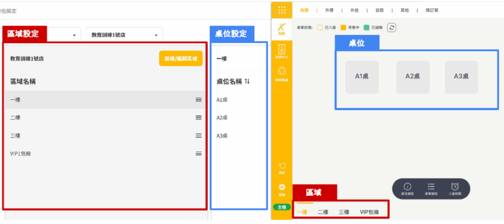 ★ 依以上操作方式即可建立不同區域及桌位