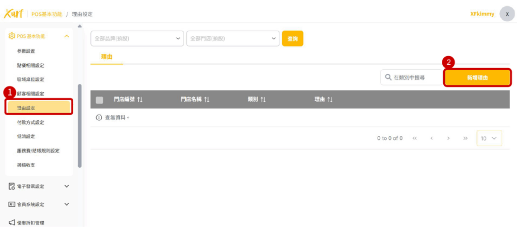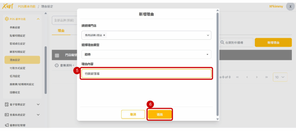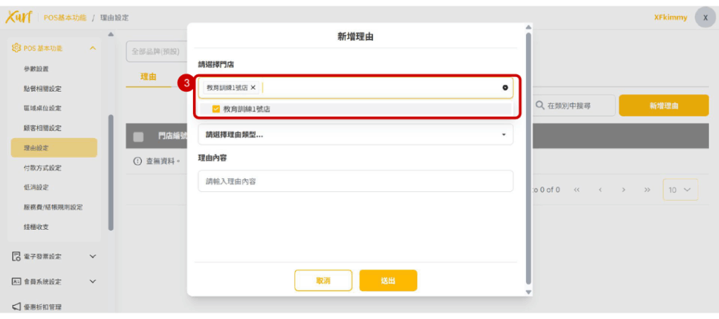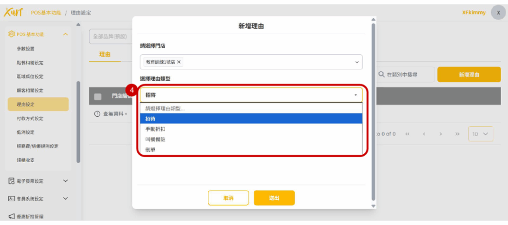★ 以下類型選擇後在POS端有開啟該功能理由選擇時即有在此建立的理由可點選