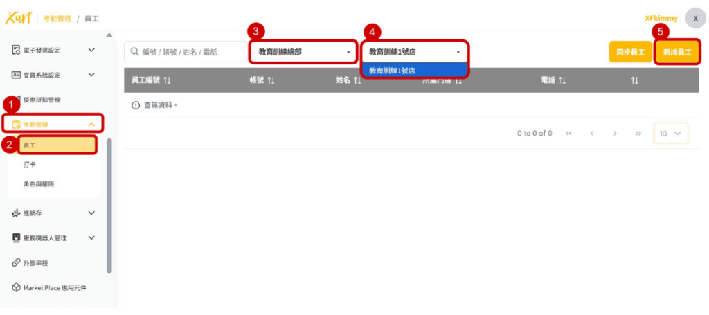 5. 點選「新增員工」