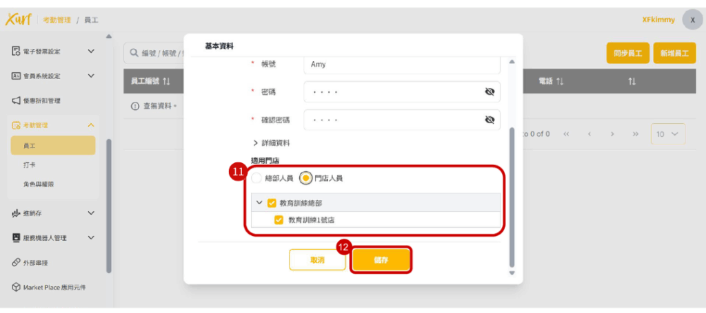 11. 點選該帳號可登入之門店