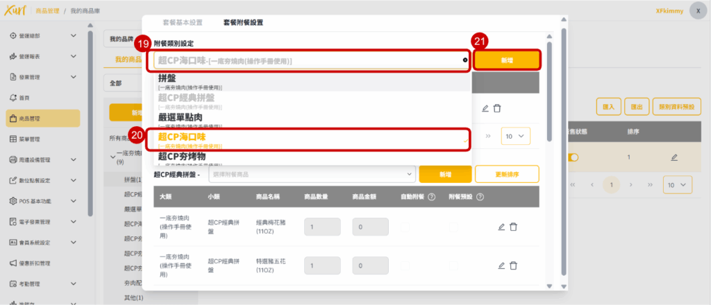 19. 點選「 附餐類別設定 」的下拉式選單
