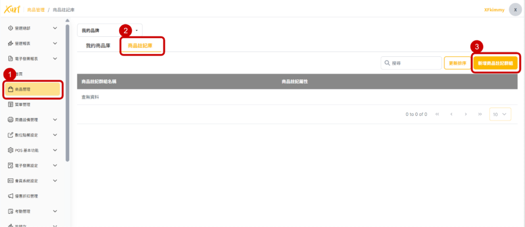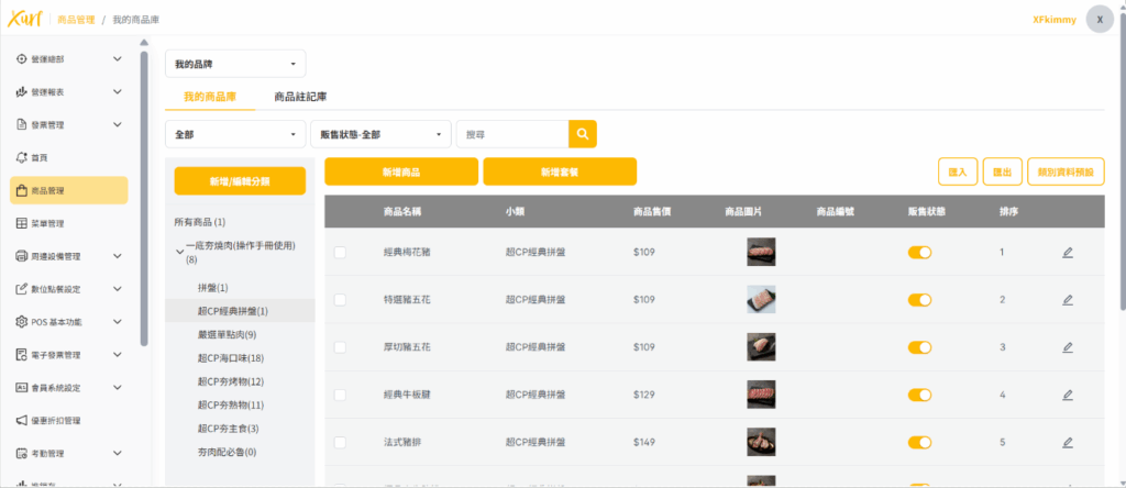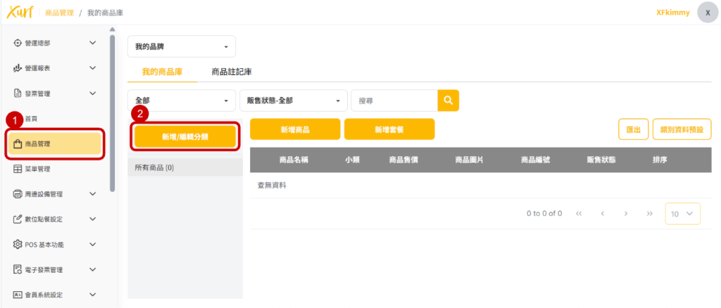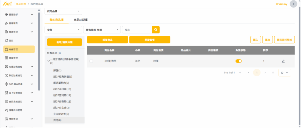 Xurf POS 系統後台 目錄