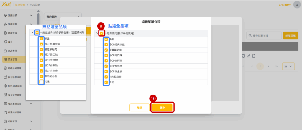 10. 點選套餐中所需商品的「分類」