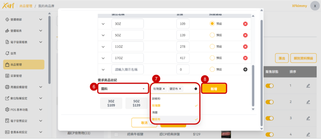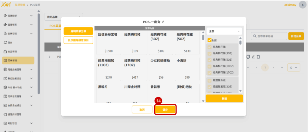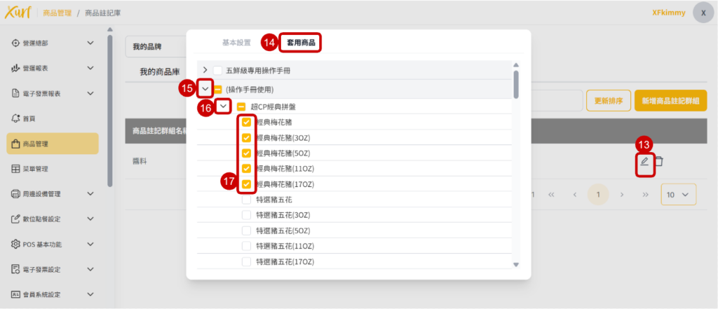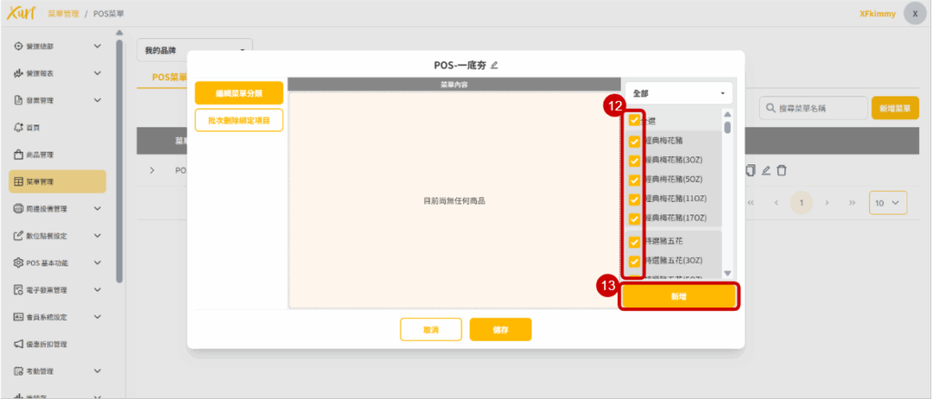 12. 點選需新增至POS的「 商品 」