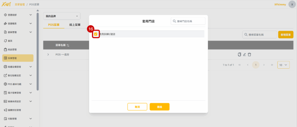 16. 點選需菜單下發之「門店」