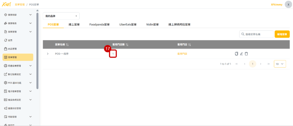 17. 新增門店後會顯示目前已套用此菜單之「門店數」