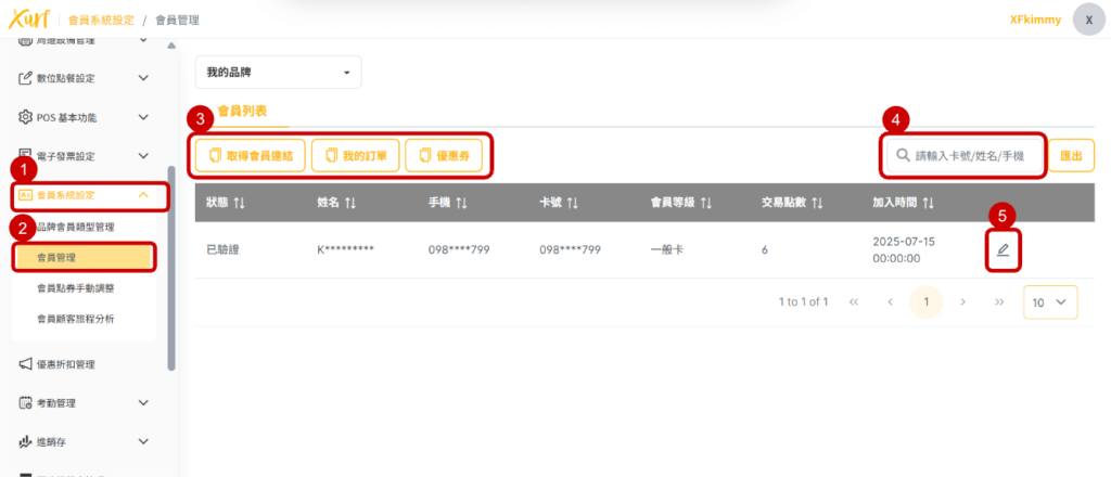 5. 點選鉛筆符號查看會員資料