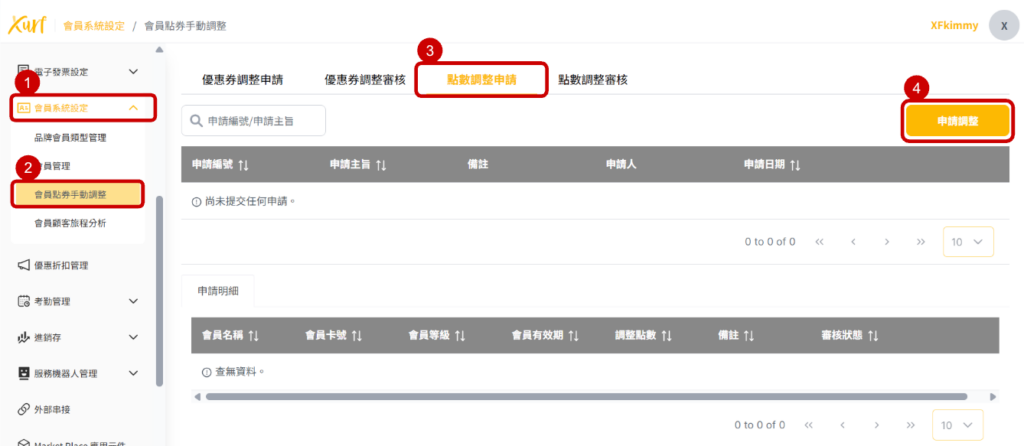 3. 點選「 點數調整申請 」