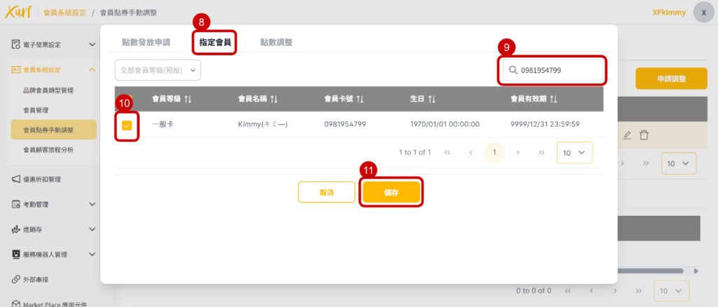 9. 輸入需補點之會員的「 電話號碼 」