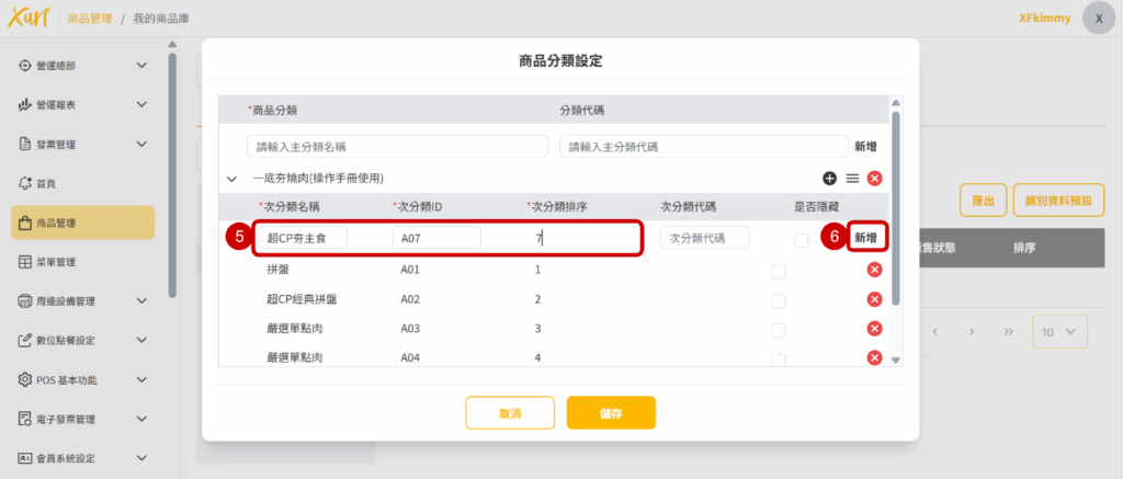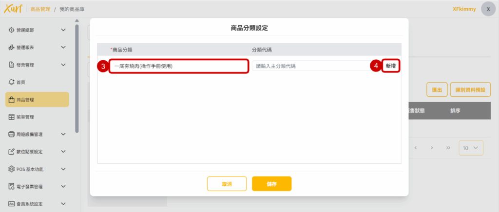 3. 在商品分類輸入「 門店名稱 」