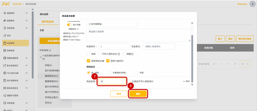 7. 輸入「商品售價」