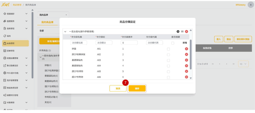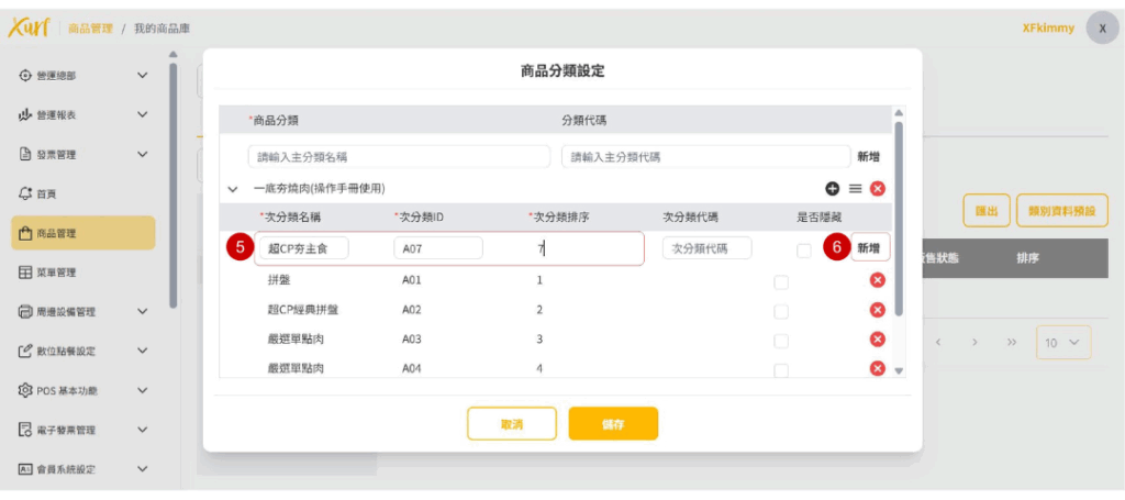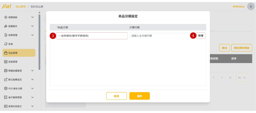 4-1-3【菜單下發】菜單管理/新增商品分類