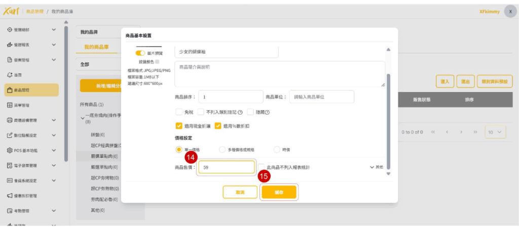 11. 點選「 分類 」的下拉式選單並點選需新增商品之分類