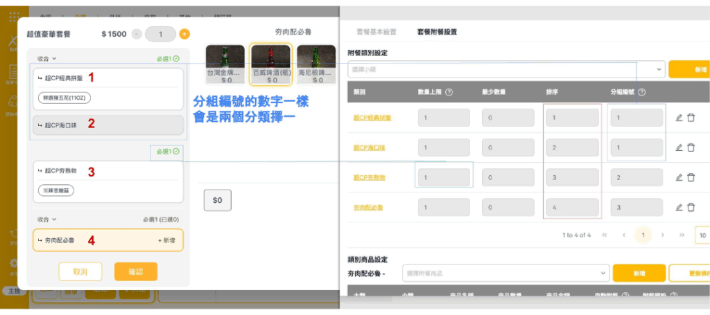 ★「 數量上限、排序、分組編號 」在POS呈現的方式
