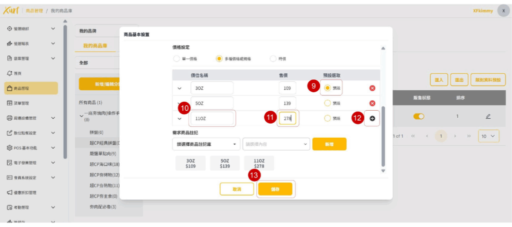 (在POS機中,若點選商品後無選擇其他價位,系統會自動選擇預設價位)