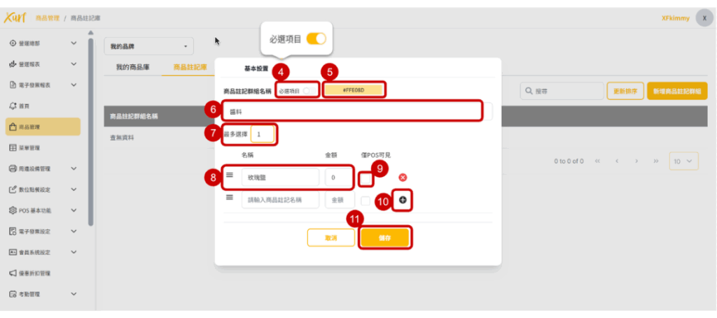 9. 若此註記在線上外帶及掃碼點餐不想顯示讓客人點選,請將該註記的「 僅POS可見 」勾選
