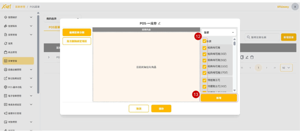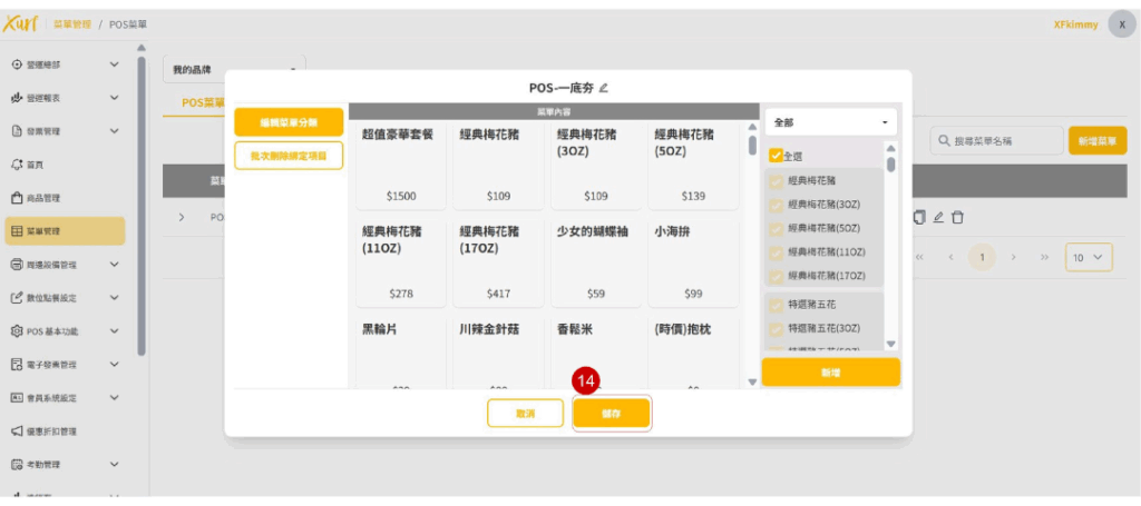 4. 菜單名稱輸入「 POS-門店名稱 」