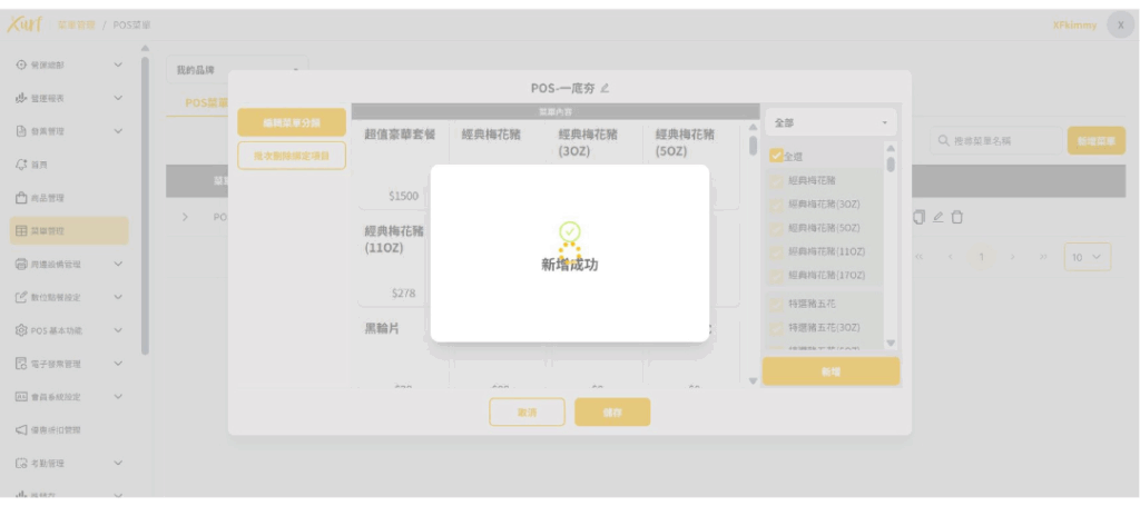 2. 點選「 POS菜單 」(此類別為下發至POS的模板)