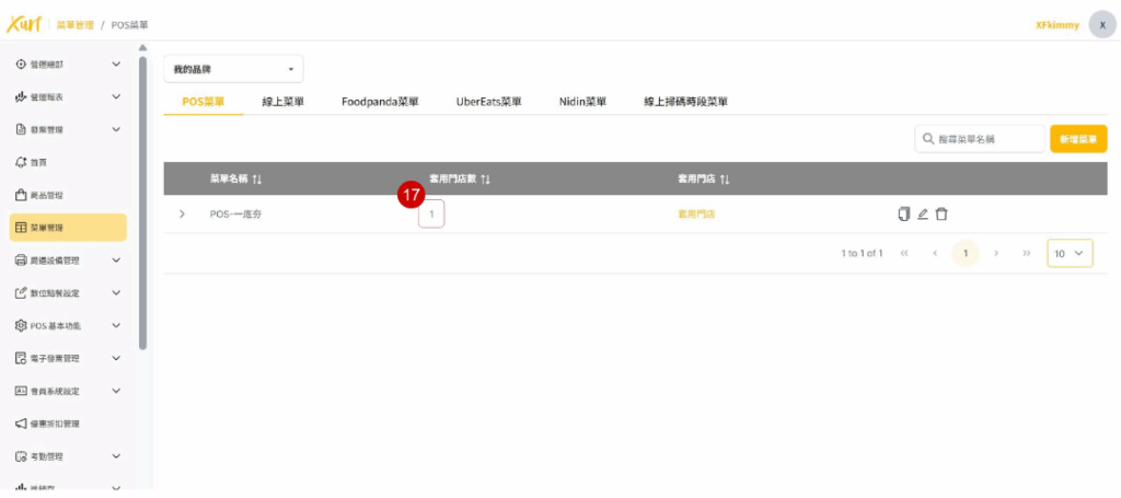 17. 新增門店後會顯示目前已套用此菜單之「 門店數 」