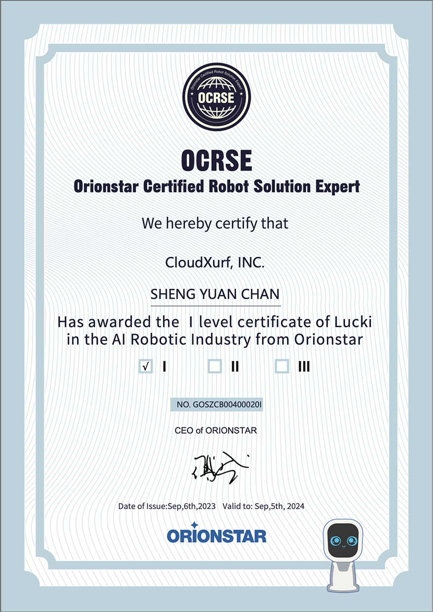所有雲悦銷售人員皆有考取獵戶星空OrionStar原廠證書